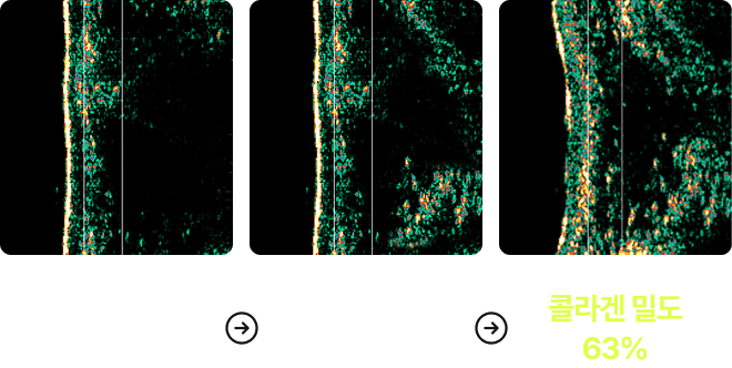 콜라겐 분포도, 노화 진행 단계를 투시하여 분석합니다.