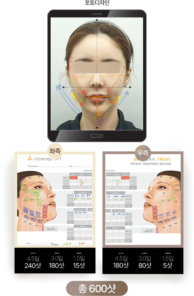 부위별 맞춤 커스텀 샷 진단으로 얼굴 밸런스를 정확하게 맞춰줍니다.