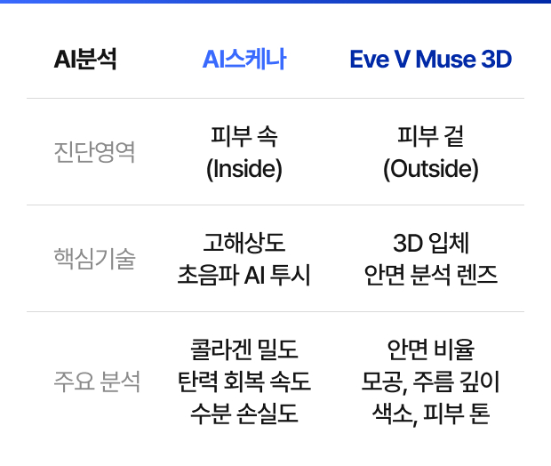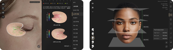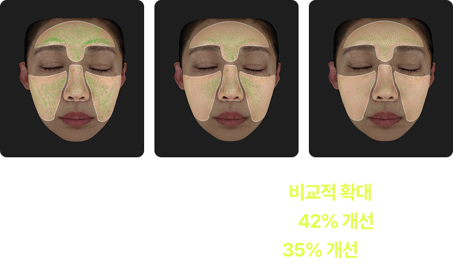 모공, 주름 깊이, 색소 침착, 피부 톤 등 육안으로 확인