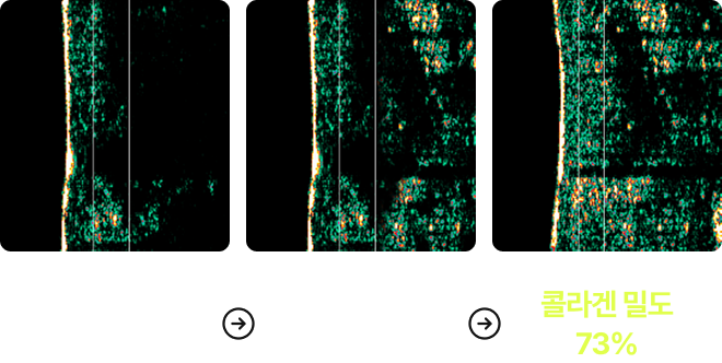콜라겐 분포도, 노화 진행 단계를 투시하여 분석합니다.